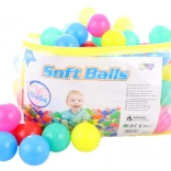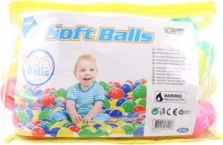 Sada 100 barevných míčků o průměru 6 cm je ideální do suchých bazénků, ohrádek, stanů a herních koutků. Lehoučké plastové kuličky jsou měkké a bezpečné, pomáhají rozvíjet motoriku a pohybovou zdatnost. Praktické balení se snadno přenáší a uklízí. Certifikace CE, EN71 pro klidné a bezpečné hraní už od 6 měsíců.