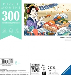Objevte radost ze skládání s kolekcí RAVENSBURGER Puzzle Moment. Tento motiv se sushi je perfektní volbou pro všechny, kdo hledají chvilku klidu a soustředění. Díky 300 dílkům puzzle složíte během jednoho až dvou večerů a vychutnáte si jasné barvy a detailní tisk.