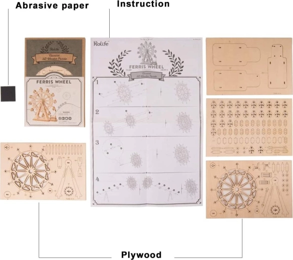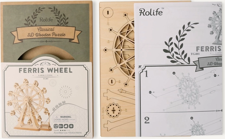 Obtížnost: 3 z 5 podle hodnocení Robotime. Rozměry složeného puzzle: 15,5 x 6,2 x 16,5 cm. Součástí balení je detailní obrázkový návod.