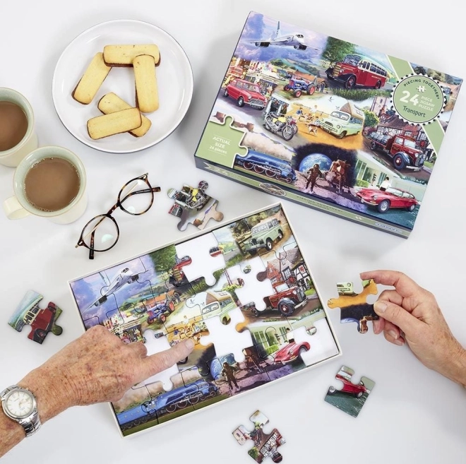 Puzzle GIBSONS z řady Skládáme spolu přináší radost ze skládání pro všechny generace. Díky menšímu počtu dílků, jasným barvám a přiložené předloze je ideální pro začátečníky, seniory i pro společné chvíle s dětmi. Motiv dopravních prostředků podporuje rozvoj vnímání, soustředění a jemné motoriky.