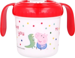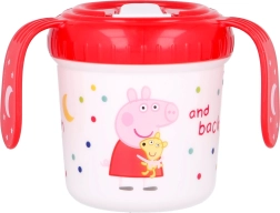 Hrneček s oušky Prasátko Peppa je navržen pro malé děti, které se učí pít. Jeho víčko s pítkem zabraňuje rozlití nápoje a barevné obrázky s oblíbenou pohádkovou postavou činí pití zábavnějším.