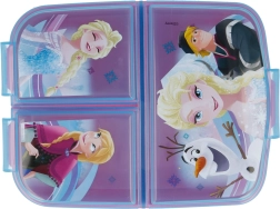 Dětský svačinový box s motivem z filmu Ledové království nabízí kombinaci krásného designu a praktické funkčnosti. Odolný plast chrání obsah před nárazy, zatímco tři oddělené přihrádky umožňují dětem organizovat jídlo dle vlastních potřeb. Přitažlivé motivy Annou, Elsou a Olafem zaručují, že si box získá srdce malých fanoušků filmu. Je ideálním řešením pro školní přestávky, výlety i hraní na hřišti. Box lze také využít k úschově dětských pokladů.