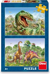 Balíček obsahuje 2 samostatné puzzle s dinosaury, každé o 48 dílcích – ideální pro střídání motivů a více zábavy.