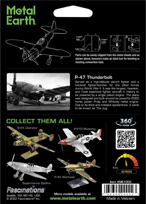 Ocelové plátky jsou precizně vyřezané a gravírované laserem, aby vynikla paneláž a historické značení P‑47 Thunderbolt.