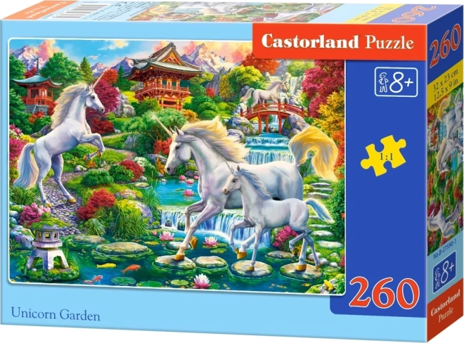 Barevné dětské puzzle s motivem Unicorn Garden nabídnou skvělou zábavu i učení v jednom. Skládají se z 260 dílků a po složení vytvoří obrázek o rozměru 32 × 23 cm. Díky kvalitnímu zpracování, živým barvám a přiměřeně velkým dílkům jsou ideální pro děti, které rozvíjejí motoriku, soustředění a představivost.