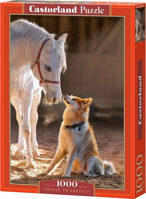 Objevte radost ze skládání s puzzle o 1000 dílcích, které zachycuje dojemnou scénu koně a psa. Vysoce kvalitní zpracování a přesné výřezy zajišťují plynulé skládání, bohaté barvy a detailní ilustraci potěší každého milovníka puzzle i zvířat.