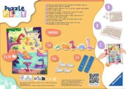 Ravensburger Puzzle a hra: Dinosauři je ideální pro děti, které milují skládání a představivou hru. Tato sada obsahuje dvě puzzle o 24 dílcích, které po dokončení mohou sloužit jako pozadí pro malé divadelní představení.