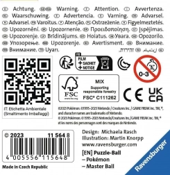 Ravensburger 3D Puzzle Pokémon Master Ball je fascinující zážitek pro malé i velké fanoušky Pokémonů. Se skvělým designem, který je typický pro vesmír Pokémonů, poskytuje tento 54-dílný puzzle zábavu a rozvíjí fantazii dětí od 6 let.