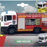 Zažijte vzrušení z hašení požárů s tímto detailně zpracovaným hasičským autem. Toto autíčko je navrženo tak, aby upoutalo pozornost nejen svými efekty světel a zvuků, ale také díky preciznímu kovovému provedení kabiny a pohyblivým částem.