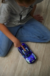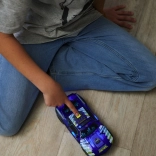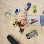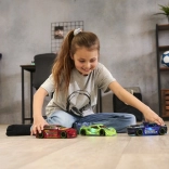 Stačí auto natáhnout po podlaze a pustit – rozjede se bez bateriového motoru, ideální pro rychlou a intuitivní hru.