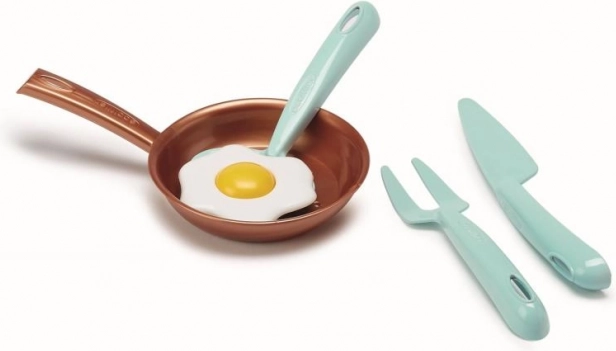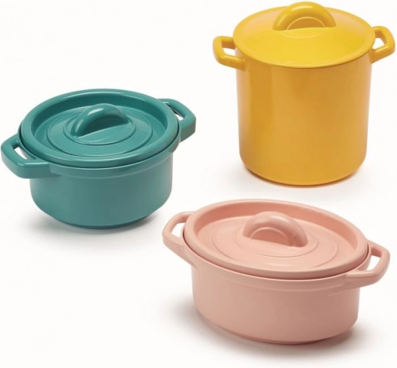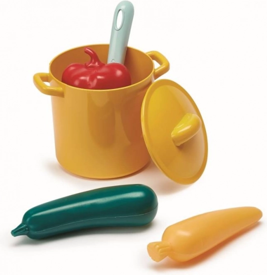 Sada obsahuje pestrou škálu pestrobarevných hrnců a pánviček, které podnítí zvědavost malých kuchařů.