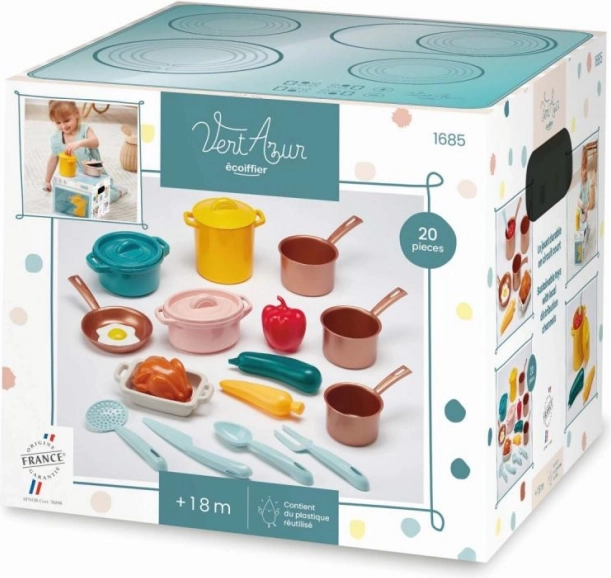 Umožněte svým dětem objevovat svět vaření s touto velkou sadou kuchyňského nádobí, která obsahuje barevné hračky potravin a nástroje pro kreativní hru. Obsahuje celkem 20 dílů pro nekonečnou zábavu.