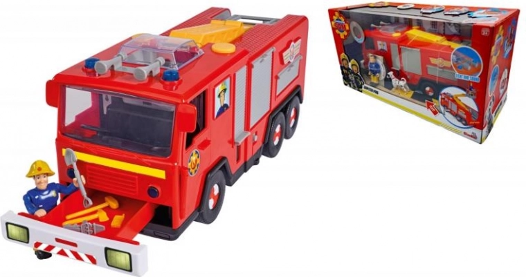 Hasičské auto Jupiter Pro s figurkou Sama a pejska. 2 různé zvukové efekty, blikající maják, výsuvný a otočný žebřík. Délka 31 cm