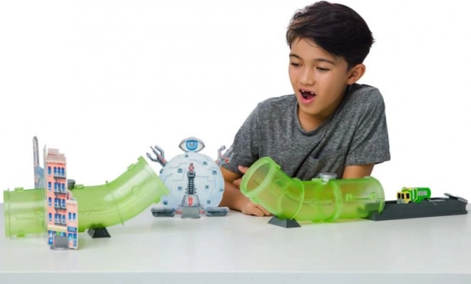 Svítivě zelené průhledné tunely dodávají dráze jedinečný vzhled a umožňují kreativní scénáře hry.