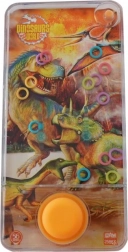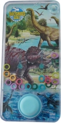 Zábavná kapesní vodní hra s motivem dinosaurů QUIZY potěší každé dítě. Stačí stisknout tlačítka a proud vody roztočí kroužky – cílem je je umístit na kolíčky. Hra podporuje šikovnost, soustředění a trpělivost, je ideální na cesty i do čekárny.