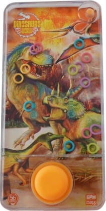 Kapesní vodní hra s dinosaury QUIZY bez baterií. Umísti kroužky na kolíčky, trénuj šikovnost a soustředění. Skvělá zábava na cesty.