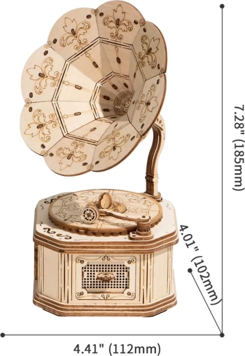 ROBOTIME Rolife 3D dřevěné puzzle Gramofon je unikátní model, který si můžete složit vlastníma rukama. Překvapí vás svými detailně vyřezávanými dílky a poskytne hodiny kreativní zábavy.