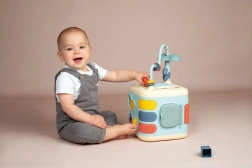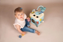 Multifunkční kostka LITTLE SMOBY přináší dětem hodiny chytré zábavy. Díky rozmanitým aktivitám – od třídění tvarů, přes otáčecí kolečka a pohyblivé prvky, až po labyrint s korálky – přirozeně rozvíjí koordinaci oko–ruka, představivost a soustředění. Jemná pastelová barevnost je příjemná na pohled a neruší.