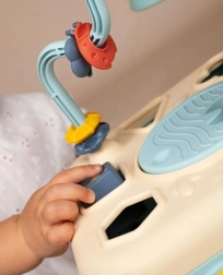 Labyrint s korálky, otáčecí prvky a ozubená kolečka rozvíjejí koordinaci oko–ruka a podporují kreativní hraní.
