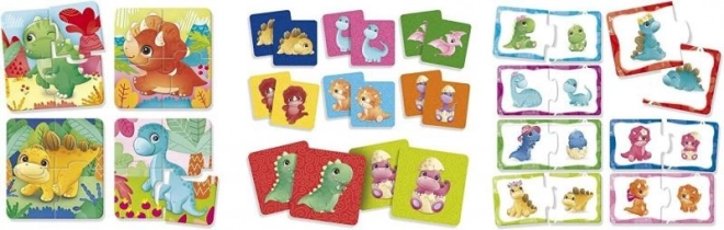 Ponořte se do báječného světa dinosaurů s Carotina Baby Dinoland, navrženého speciálně pro ty nejmenší. Tento set obsahuje 4 skládačky, logickou hru se 16 dílky a memo hru se 16 kartami, což je ideální kombinace pro rozvoj dětských schopností.