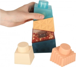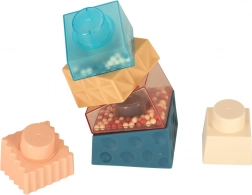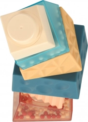 Barevné a texturované kostky, včetně těch s kuličkami, stimulují zrak a hmat dítěte.