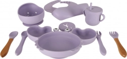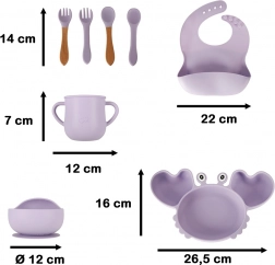 Kompletní 9dílná silikonová sada pro první samostatné papání. Obsahuje krabí talíř, misku s přísavkou, tréninkový hrníček se dvěma víčky a brčkem, příbor a praktický bryndák. Vše z bezpečného BPA free silikonu, s protiskluzovými přísavkami a snadnou údržbou pro čisté a pohodlné stolování malých jedlíků.