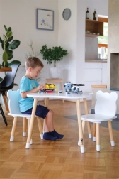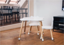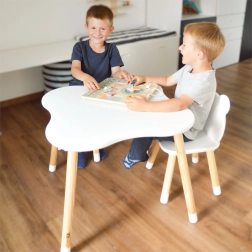 Tento moderní dřevěný set v nadčasové kombinaci bílé a přírodního dřeva krásně zapadne do každého dětského pokojíčku či herny. Oblé linie a hravý vzhled s medvědími oušky podněcují děti k fantazii, zatímco robustní materiály zajišťují dlouhou životnost a snadné čištění.