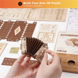 Užijte si výzvu sestavování s 3D dřevěným modelem akordeonu. Model je vyroben z laserem vyřezávané lipové překližky, která zaručuje preciznost dílků.