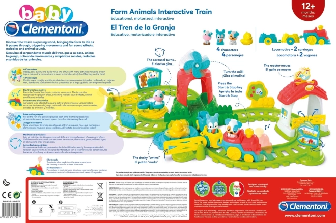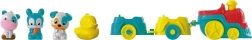 Tento pestrý a zábavný vlakový set přetváří dětské hry do dobrodružství na farmě. Jakmile vlak projíždí, ožívá farma: ramena jeřábu se zvedají, mlýn se začíná otáčet a zvířátka zaujmou svou charakteristickou zvukovou roli. Zavřením žluté brány začíná kachnička „plavat“ okolo rybníka, a kolotoč se točí. Skvělý způsob, jak stimulovat koordinaci rukou a očí a podněcovat dětskou představivost.