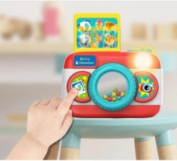 Tento barevný plastový fotoaparát pro děti nabízí více než jen zábavu – je zdrojem učenia. Obsahuje tlačítka pro přehrávání melodií a zvukových efektů, které se střídají při každém stisknutí. Světelné efekty a interaktivní prvky stimulují senzorický rozvoj a malou motoriku dítěte.