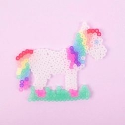 V praktickém kbelíku najdete mix barev: modrá, červená, fialová, zelená, oranžová, bílá, žlutá a růžová. Korálky mají výšku cca 5 mm, průměr 5 mm a průměr otvoru 2,5 mm, což zajišťuje pohodlné použití při zažehlování i navlékání.