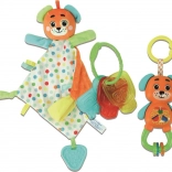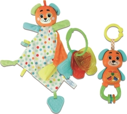 Tato dárková sada od BABY CLEMENTONI spojuje pohodlí, bezpečí a zábavu do jednoho balíčku. Měkoučký usínáček z hypoalergenní tkaniny absorbuje pachy a vůně maminky, čímž miminko uklidňuje během odloučení. Barevné chrastítko s kroužky stimuluje zrak a sluch, zatímco silikonové kousátko ve tvaru klíčů přináší úlevu při prořezávání zoubků.