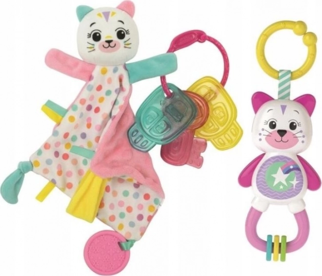- Silikonové kousátko ve tvaru klíčů – jemně masíruje dásně a ulevuje při prořezávání zoubků.