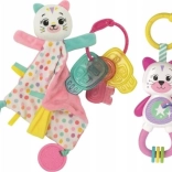 Roztomilé dárkové balení pro nejmenší obsahuje měkkého usínáčka, barevné chrastítko a silikonové kousátko. Ideální jako první hračka – podporuje zklidnění, rozvoj smyslů i motoriku, a je vyrobené z bezpečných a kvalitních materiálů.