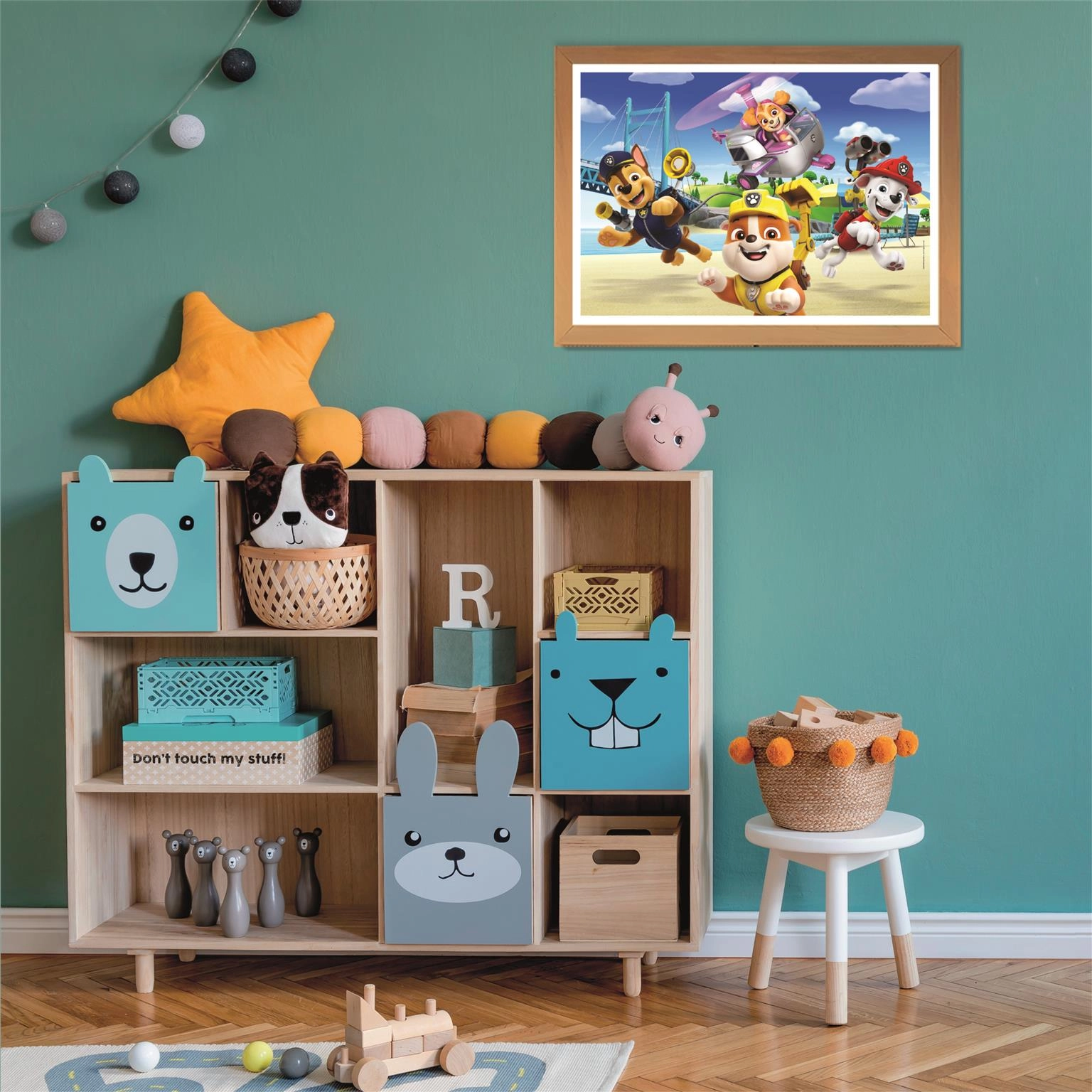 Barevná scéna s postavami z Tlapkové patrola vtáhne děti do světa záchranářských dobrodružství a motivuje je skládat znovu a znovu.