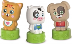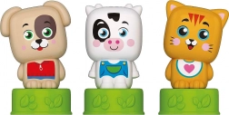 Tři postavičky – kočka, kravička a pejsek – motivují děti k tvořivému hraní, rozvíjejí představivost a podporují první logické asociace.