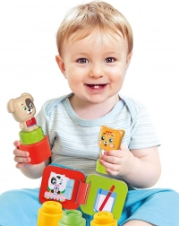 Tato kreativní sada CLEMENTONI podporuje přirozenou zvídavost dětí. Měkké a pružné kostky se snadno mačkají, bezpečně skládají a lákají k dotýkání díky rozdílným povrchovým texturám. Ilustrovaná knížka se zvířátky rozvíjí rané vnímání, jazyk a interakci rodiče s dítětem.