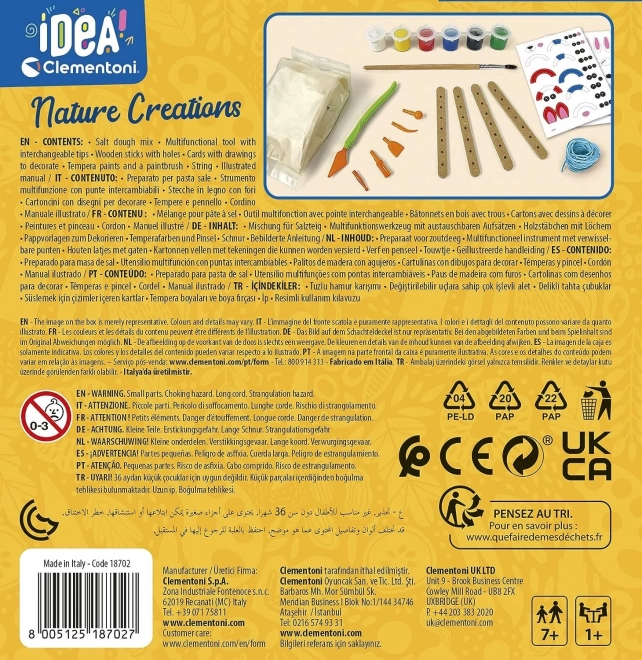 Tato kreativní sada CLEMENTONI IDEA Příroda přináší vše, co děti potřebují k výrobě krásných dekorací z slaného těsta. Modelujte, vykrajujte, kroutíte, malujte a zdobte – fantazii se meze nekladou. Hotové výtvory mohou zdobit dětský pokoj nebo posloužit jako milé dárky.
