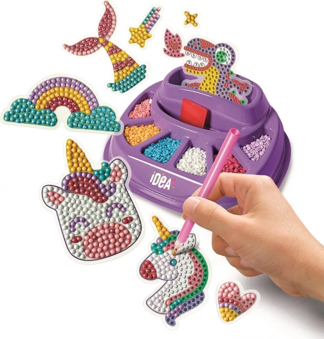 Objevte kreativní sadu pro diamantové malování, se kterou vytvoříte zářivé samolepky s jednorožci a dalšími motivy. Díky přiloženému peru snadno nanesete 3D drahokamy podle předlohy či vlastní fantazie. Aktivita rozvíjí jemnou motoriku, soustředění i trpělivost a přináší relaxační tvoření pro děti i dospělé.