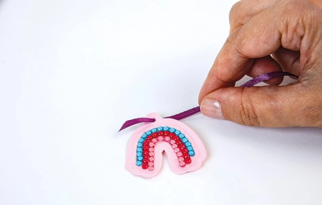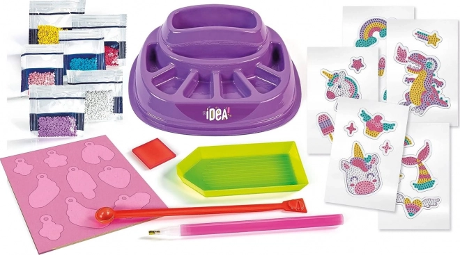 Pomocí aplikačního pera snadno umístíte barevné korálky a vytvoříte zářivé přívěsky či samolepky s osobitým stylem.