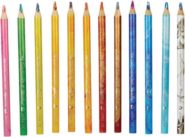 Dřevěné trojhranné pastelky ASTRA ve velikosti jumbo jsou navržené pro pohodlný úchop a maximální kreativitu. Speciální mnohobarevné jádro vytváří při každém tahu pestré, plynule se měnící čáry bez nutnosti pastelku otáčet. Skvěle se hodí pro kreslení vody, trávy, nebe či písku, kde vyniknou přirozené barevné přechody.