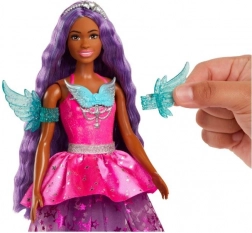 Panenka Barbie Brooklyn září v pohádkových šatech, které jsou inspirovány kouzlem a fantazií. Má na sobě šaty s tylovou sukní ozdobenou hvězdami a detaily křídel na živůtku, které podtrhují její magický vzhled. Panenka je vybavena fialovými vlasy o délce 17 cm a řadou doplňků, včetně hřebenu, třpytivé čelenky a ozdobné sponky do vlasů.