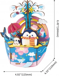 Dřevěné 3D puzzle Hrací skříňka Tučňák v oceánu je ideální volbou pro milovníky modelářství a hudby. Tato atraktivní dekorace nejen že zaujme svým vzhledem, ale také přehrává příjemnou melodii „If I Stop Loving“.