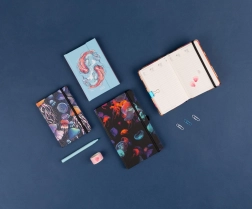 Díky kompaktním rozměrům 13 × 21 cm se zápisník snadno vejde do kabelky či batohu. Vnitřní kapsa uchová vizitky či papírové drobnosti, zatímco stužková záložka pomůže okamžitě najít rozpracované stránky. Linkovaný papír poskytuje přehlednou strukturu pro čisté a čitelné poznámky.