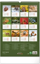 Nástěnný kalendář pro milovníky myslivosti a české přírody obsahuje kromě krásných fotografií zvířat typických pro české lesy, také předepsanou dobu lovu a časy východů a západů slunce. Součástí kalendáře je také rozšířené kalendárium se svátky a českými jmény.