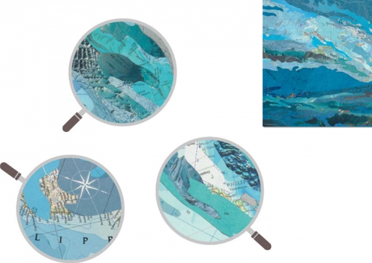 - Umění, koláž ze starých map