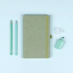 Moderní zelený vzhled s jemnou texturou a pevná knižní vazba se zaoblenými rohy zajišťují dlouhou životnost a pohodlné používání každý den.