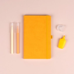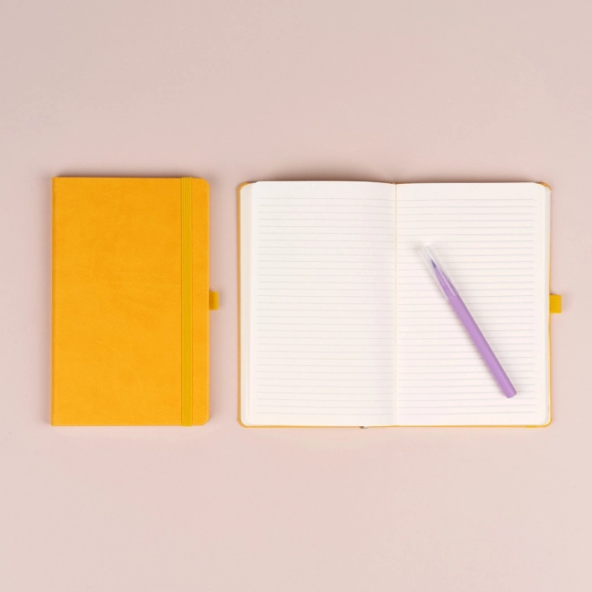 Zápisník NOTIQUE v sytě žluté barvě kombinuje elegantní design a funkčnost. Díky pevným deskám a zaobleným rohům skvěle odolá každodennímu používání v kanceláři, škole i na cestách. Praktická elastická gumička udrží listy pohromadě a boční poutko zajistí, že budete mít tužku vždy po ruce.