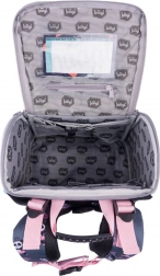 Vyklápěcí systém otevírání umožní rychlý přístup k učebnicím přímo z lavice. Uvnitř je průhledná kapsa s rozvrhem a organizér s gumičkou pro rovnoměrné rozložení hmotnosti.