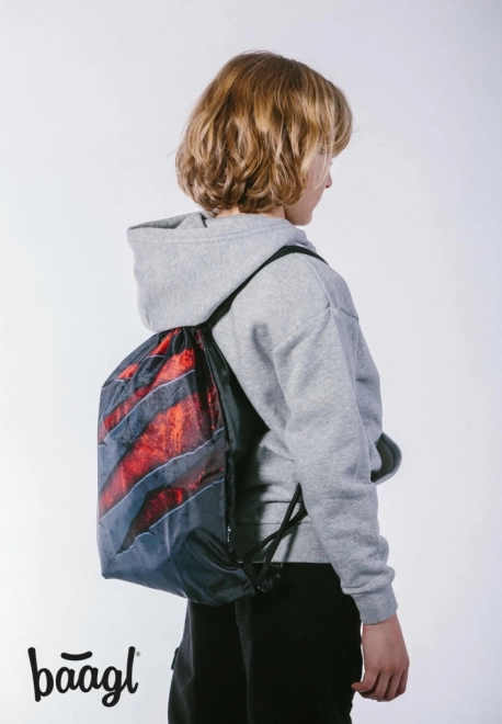 Praktický sáček na obuv a sportovní vybavení v designu Láva od značky Baagl. Vyroben z pevného omyvatelného materiálu a uzavírá se odolnými tkanicemi, které zároveň umožňují pohodlné nošení na zádech. Ideální do školy, na trénink i volný čas.